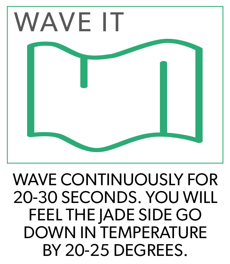 Real Jade in towel's fabric. Cools skin by up to 30° upon contact